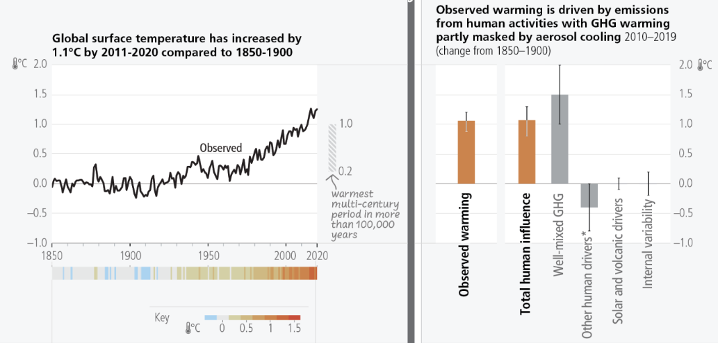 Questa settimana l’Intergovernmental Panel on Climate Change (IPCC) ha pubblicato il Rapporto di Sintesi del suo Sesto Rapporto di Valutazione dei cambiamenti climatici. Il rapporto presenta le evidenze scientifiche più recenti e aggiornate sui cambiamenti climatici, sottolineando come sia “più probabile che non” che le temperature globali raggiungano un riscaldamento di 1,5°C rispetto ai livelli preindustriali, ponendoci sulla rotta di un superamento dell’obiettivo fissato dalle Parti alla conferenza sul clima di Parigi del 2015.